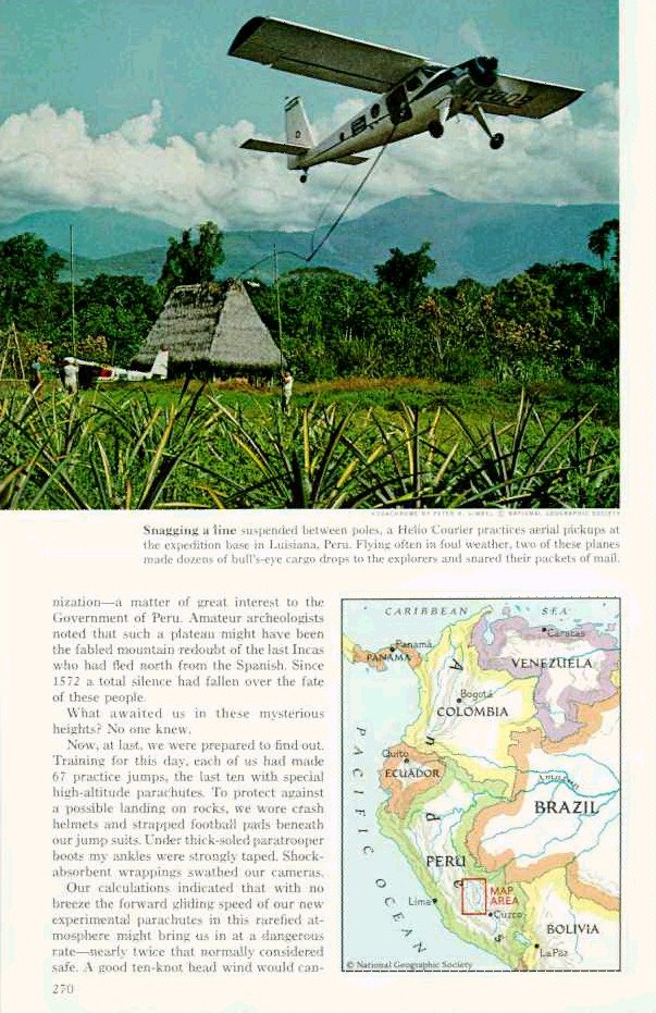 National Geographic Magazine August 1964 Página 270 - Page 270 (enlarge - ampliar) Note: Page 271 has a detailed map of the region of the Vilcabamba mountains.