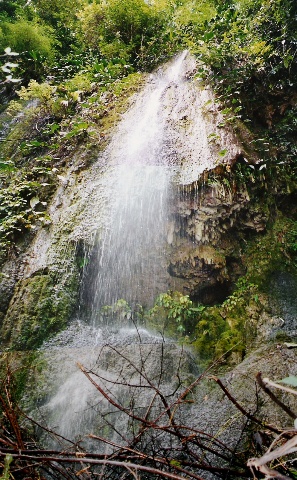 Waterfall with cavern on Mayoventi river . . (Photo: Joel Rivera). . . Catarata con caverna sobre río Mayoventi. _ _