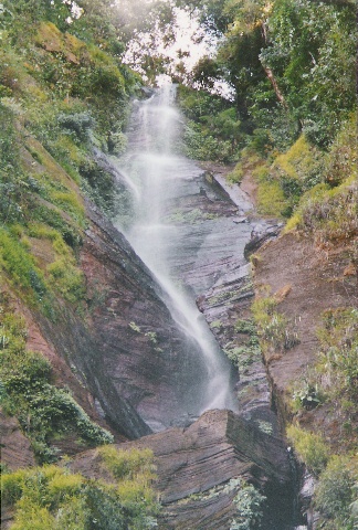Upper part of beautiful waterfall in Mayoventi gorge (Photo: Joel Rivera). . . Parte alta de bella catarata en la quebrada del río Mayoventi. _ _