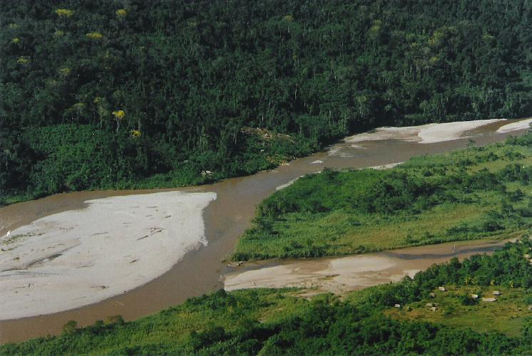 . . . . Small Ashaninka settlements next to the lower section of Cutivireni river . . . . Pequeños caseríos Asháninkas al lado de la parte baja del río Cutivireni . . . .