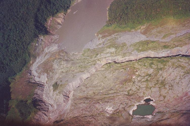 Part of lake of Mayoventi and enormous landslide that acts as a dam (note great crack)