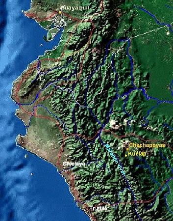 Detailed map with locations of Chachapoyas & Kuelap