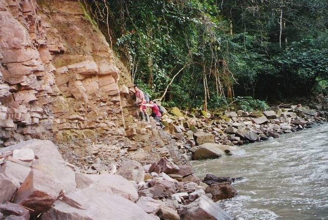 Trepando por acantilado en camino al lago Mayoventi.