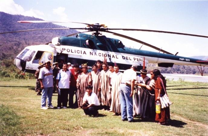 Reception of Government representatives bringing donations to rescued Ashaninkas. . . . Recepción a comitiva del gobierno trayendo donaciones para los Asháninkas rescatados. . . .