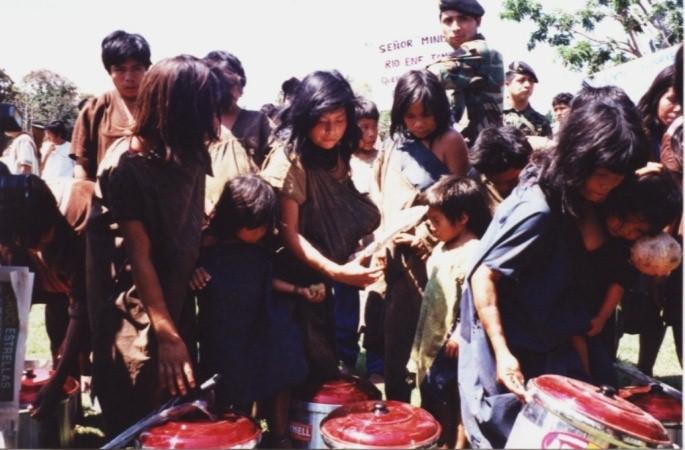 Ashaninka women and children receiving donations after the rescue. . . . Mujeres y niños Asháninkas recibiendo donaciones después del rescate. . . .