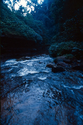 Turbulent stream in ravine near the Tsiapo waterfalls . . . . . . Riachuelo turbulento en quebrada cerca de las cataratas de Tsiapo