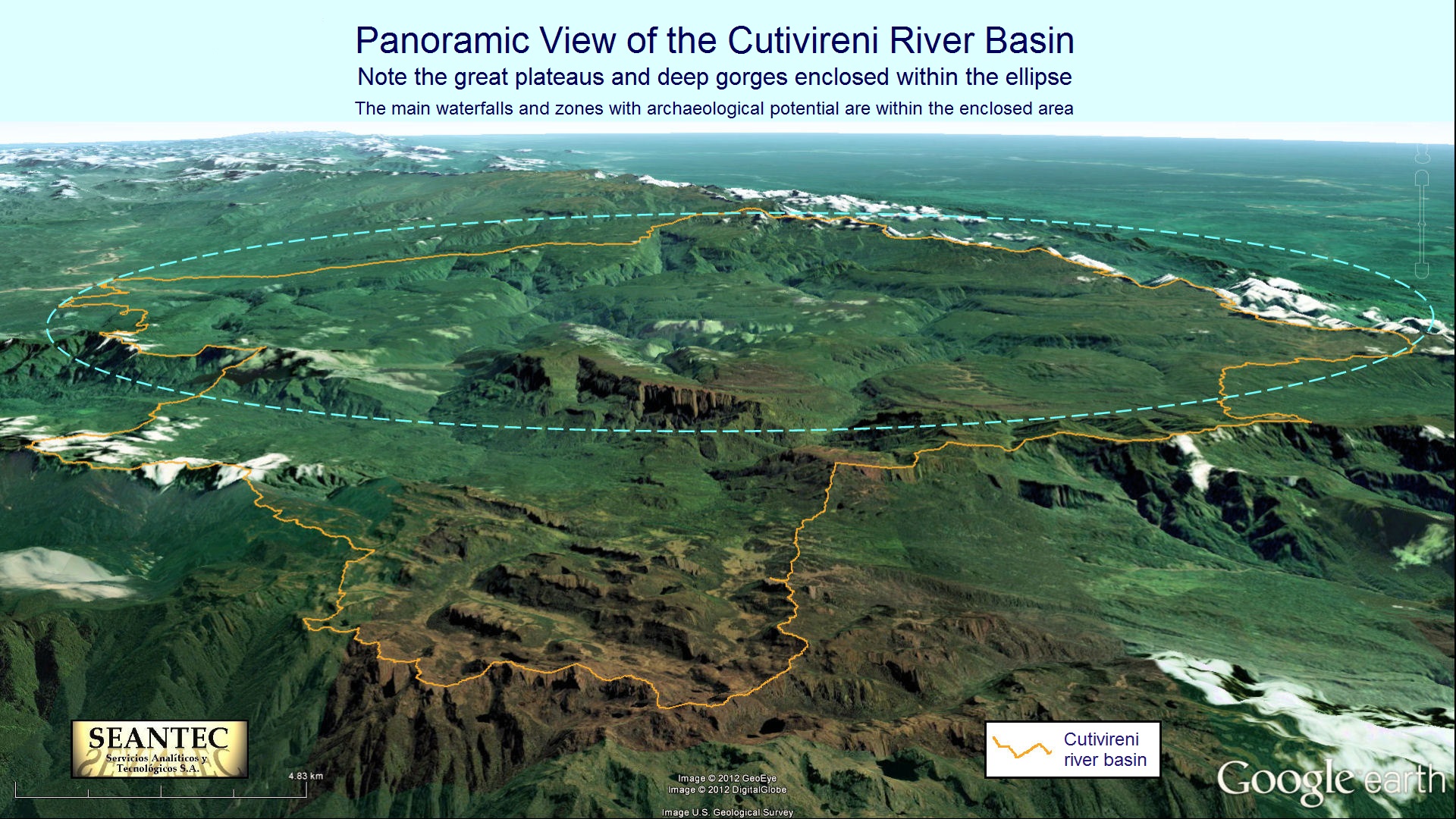The intervened area is located at approximately 1550 meters from the large cave, which is located downhill at about 2560 meters above sea level. On the other hand, the area contains no other sign of human intervention, or typical huts that would be visible in the satellite images of Google Earth which in that area are of high resolution. The virtually inescapable conclusion that we are arriving to, based on the evidence presented, is that the people who have created this plot are currently living underground in one of the cave systems that exist in at least three of the great plateaus of the region. It is noteworthy that the six large plateaus of the region are entirely within the Cutivireni river basin area, which is practically unknown to the vast majority of Peruvians. All this leads us to think that there may be an uncontacted population in the region. We have no way of knowing the origin of this possible underground population, but it is likely, however remote it may seem, that it may be related to the Inca population which under the leadership of Manco Inca rebelled against the Spanish invasion in 1535, fleeing precisely this direction, to the northwest of Cusco in the Cordillera Vilcabamba. This hypothesis may seem fantastic, but in any case should be thoroughly investigated. The foundation of this hypothesis is that, because of the unknown and difficult terrain of this region which was for the first time was mapped correctly in the 1960s (1), peruvians were never able to investigate with the necessary geographical and historical rigor what really happened with the creators of the Inca culture, whose magnificent works of architecture and engineering are admired worldwide. On the other hand, interest on the myths of the "Lost City of the Incas" (2) is an additional motivation to thoroughly examine this issue. Today there are technologies such as geographic analysis used in this report that may help in the search for truth. Further reading: Article published in the book "The Nature and Culture of Latin America. Review of Polish Studies", Cracovia, 2010 (link). A preliminary version of the article, originally drafted in 2007 can be found in http://www.peruvia-gallery.com/geography/index.html (see the chapter on "Archaeological Potential "). Lima-Perú, January, 2013, translated from Spanish to English and updated, March 2016. |