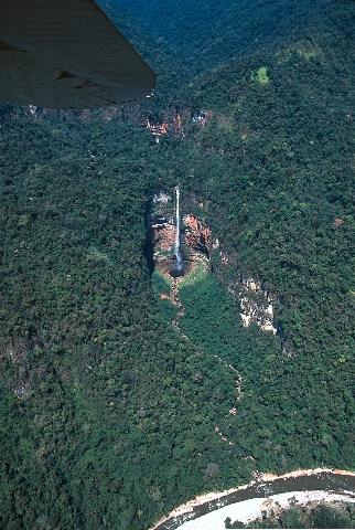Panoramic view of the great Parijaro waterfall flowing into the Cutivireni river. . . . Vista panorámica de la gran catarata Parijaro, fluyendo hacia el río Cutivireni. . . .
