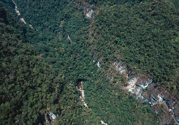 Natural bridge seen from the northwest (downstream) side . . . . . . Puente natural visto desde el lado nor-occidental (aguas abajo)