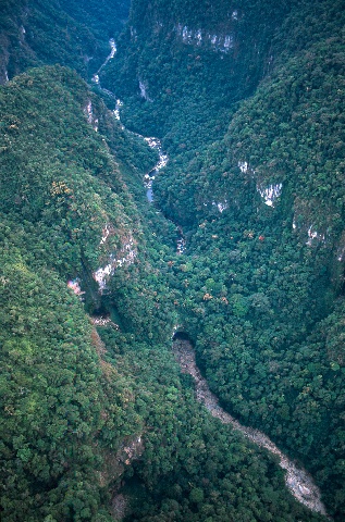 Panoramic view of the world's most massive natural bridge taken from the southeastern upstream side . . . . . . Vista panorámica del puente natural más grande del mundo tomada desde el lado sudoriental aguas arriba